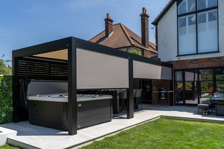 Two of our entries highlight technically challenging residential shading projects. The first, in Suffolk, created a flexible, all-season garden space using connected Deluxe and Deluxe-Plus Pods.