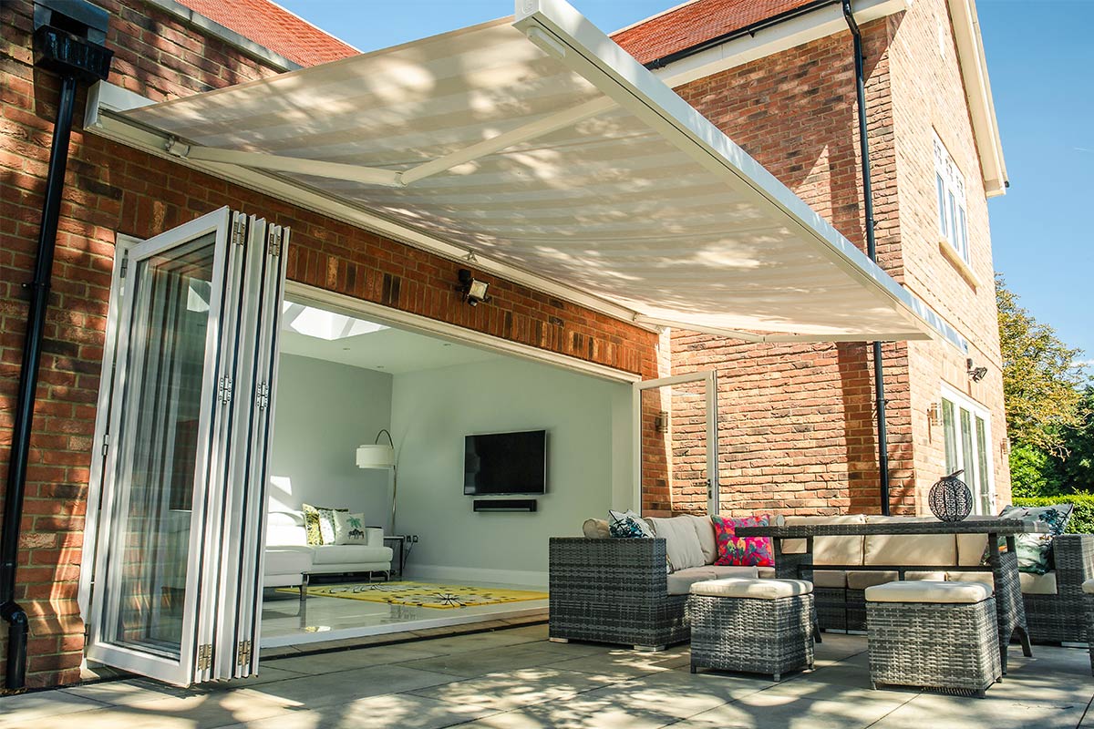 What makes this particular projects special is these two Patio Awnings are fixed right above the bi-fold doors to extend the living space naturally from the internal to the external, which is something that we were keen to highlight. Using a Garden Awning in this situation enhances the living space by providing sheltered areas just in front of the glazed doors so that they can add outdoor furniture to relax and enjoy the outdoors. The combination of the bi-fold doors and awnings will make you feel as if you never left the house but only with the added comfort of the natural breeze stroking your skin.
