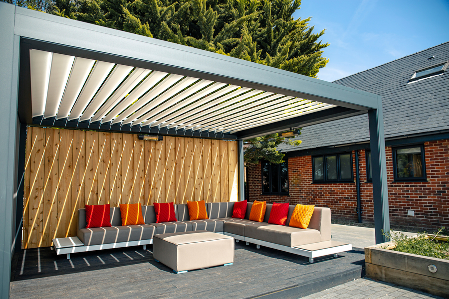 Here, we present five superbly engineered aluminium louvered pergola designs, perfect for decking protection. Each of our Outdoor Living Pods is built for comfort, durability and visual appeal – with precision-engineered louvres, effortless motorised operation and a wide choice of optional extras like lighting, heating and side screens: