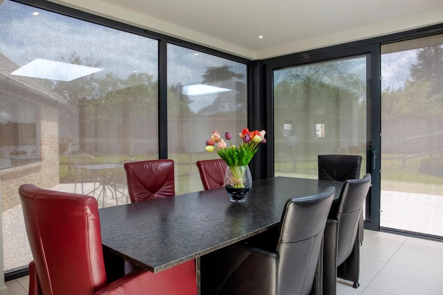 Orientation plays a key role. South-facing glazing benefits from modern external blinds that manage solar gain across extended daylight hours. East- and west-facing windows often require protection during early morning or late afternoon, when low sun is at its most intrusive. Adjusting shading by time of day ensures a balanced amount of light without compromising comfort.
