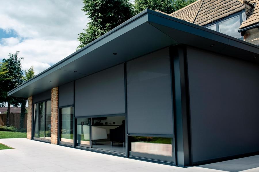 Caribbean Blinds produces tensioned external roof blinds for conservatory roofs, skylights and rooflights, as well as external roller blinds for vertical glazing such as sliding and folding doors, along with patio awnings that project out from the façade, which the company started manufacturing when it was founded back in 1987. About 15 years ago we introduced louvered roof pergolas, which are still a relatively new type of shading system in the UK. The rotating roof louvers (like a Venetian blind but mounted horizontally) can follow the direction and angle of the sun to provide precise sun control along with ventilation, not to mention the ultimate alfresco spot on the terrace thanks to the louvers being completely weatherproof when closed.