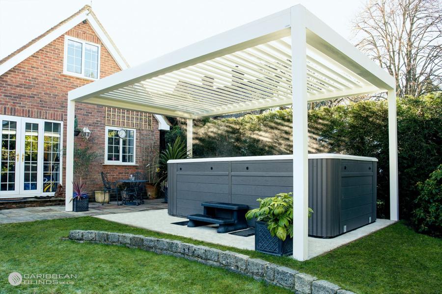 If you dream of creating a serene and relaxing garden space fully equipped with a hot tub, why not consider installing a pergola to create more privacy? As well as being protected from prying eyes, you’ll also have more control over the amount of sun and shade exposure. Installing LED lighting and windproof side screens into your aluminium hot tub pergola will guarantee you can really make the most of this outdoor jacuzzi.