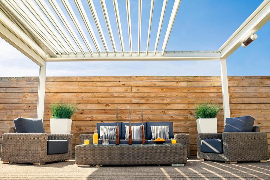 To create the ultimate outdoor experience, invest in multifunctional pergolas which allow you to enjoy the best of both worlds. Thanks to the ingenious design, you can rotate the louvers to alter the amount of sun and shade passing through or you can fully retract the pergola roof to create a complete open air experience.