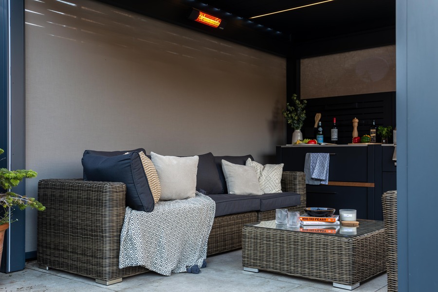A reliable heat source is the foundation of any winter patio. Fire pits remain a favourite choice, offering both comfort and atmosphere with the dancing flame becoming the focal point for your gatherings. Propane heaters are another good idea for enclosed spaces, providing steady warmth without smoke or sparks. For a touch of luxury, combine heating options by adding infrared heaters to your pergola, ensuring complete protection of your furniture and consistent warmth through the coldest months.