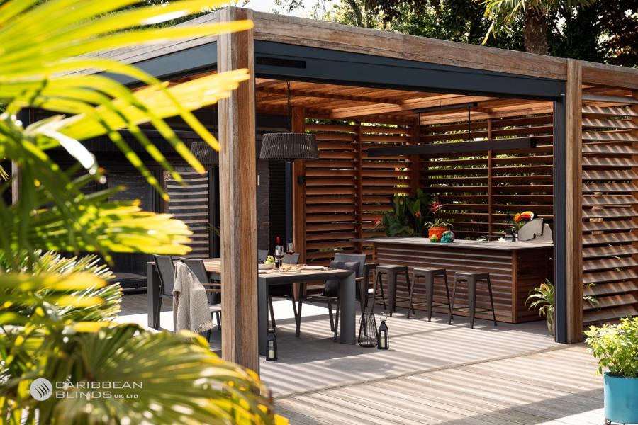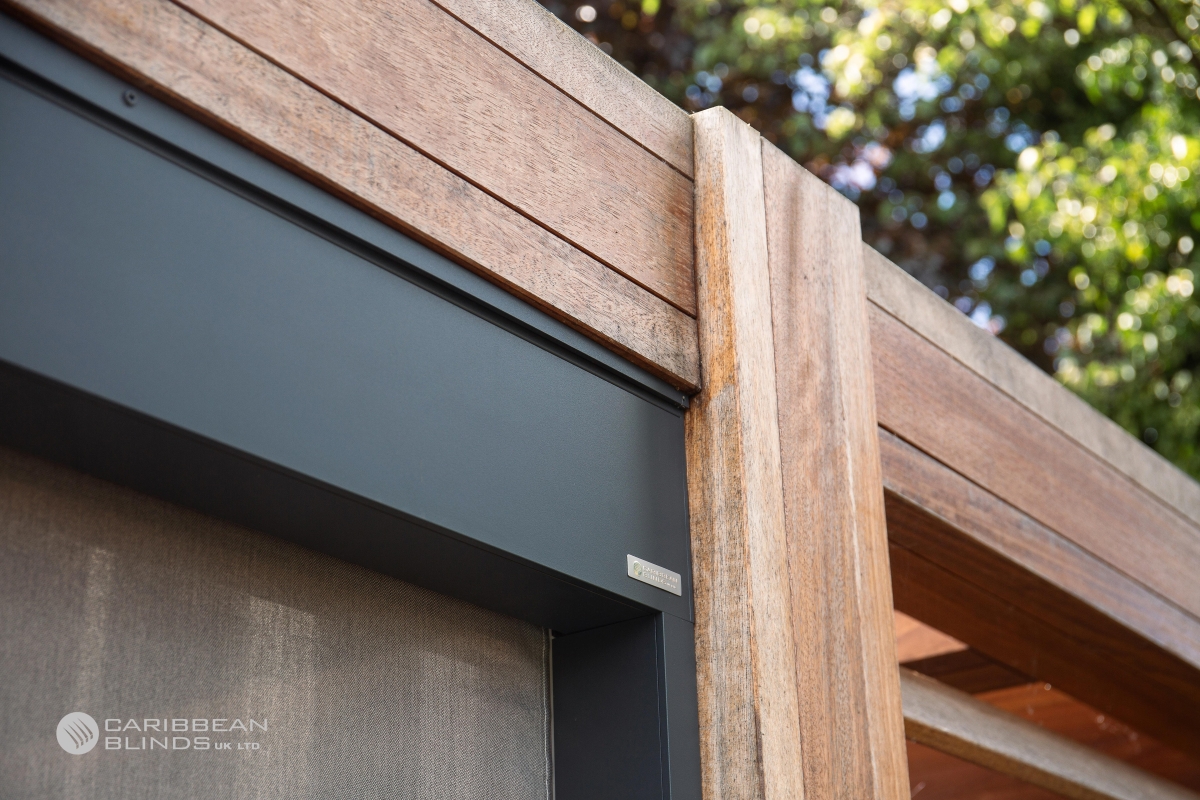 The cold, frost and damp of our winter months needn’t limit your gazebo’s potential. Caribbean Blinds’ specialist external shading solutions transform these outdoor structures into cosy havens, offering protection against the elements. Our Dominica and Dominica Solar blind ranges provide that crucial extra layer of protection, effectively creating sidewalls that shield against harsh weather conditions while maintaining the gazebo’s aesthetic appeal.