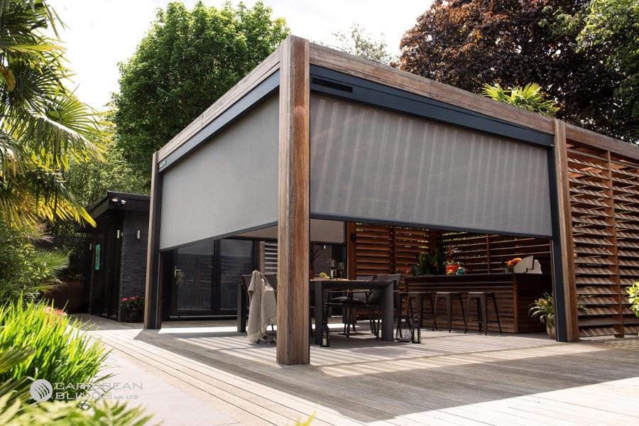 Our expert installation team carefully assesses each project, ensuring the blinds complement your gazebo’s design while creating a dry area that is protected from autumn and winter elements. Both the Dominica and Dominica Solar blind  ranges offer motorised operation, allowing easy adjustment as weather conditions change – particularly useful during unpredictable British weather.