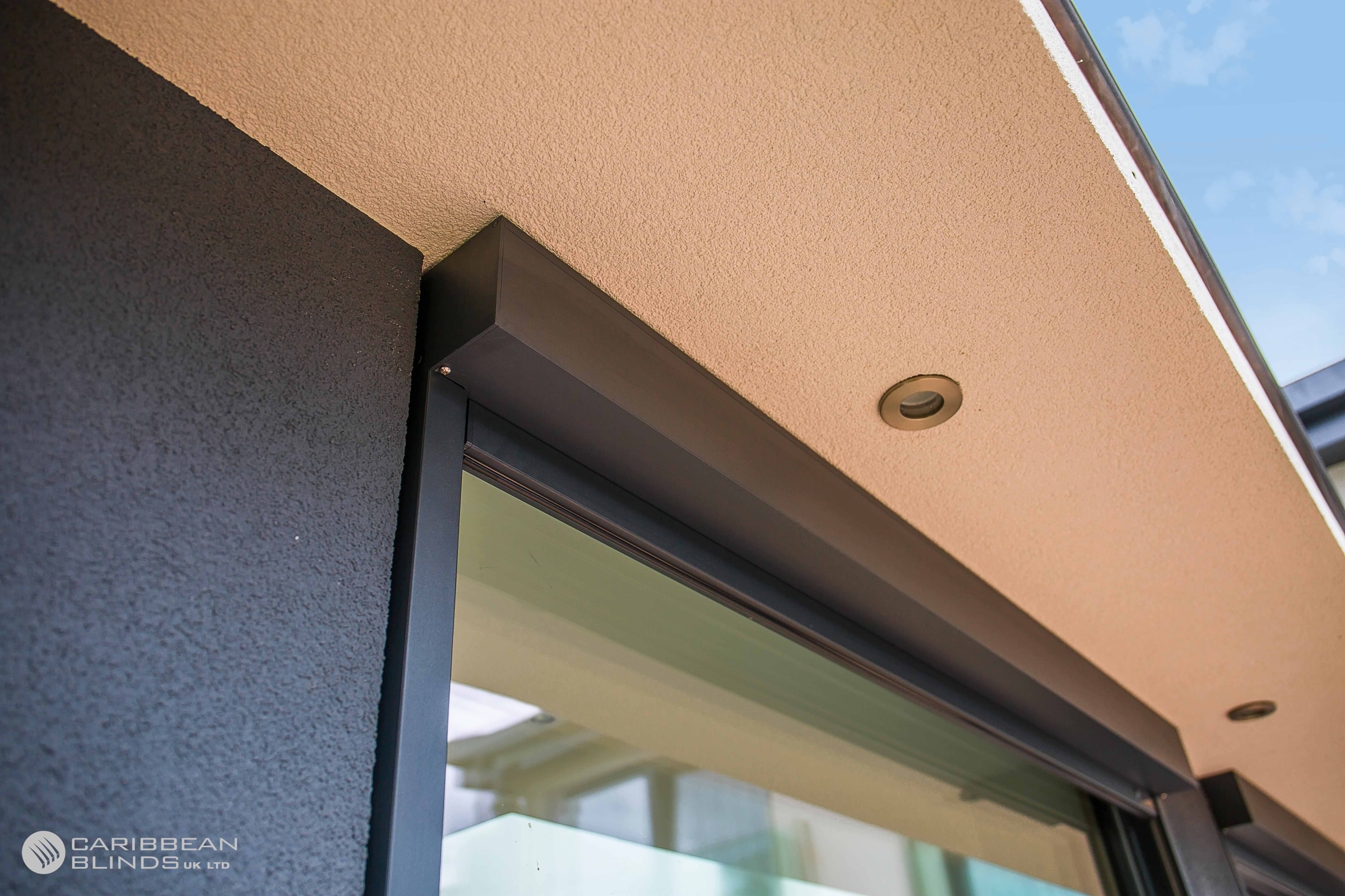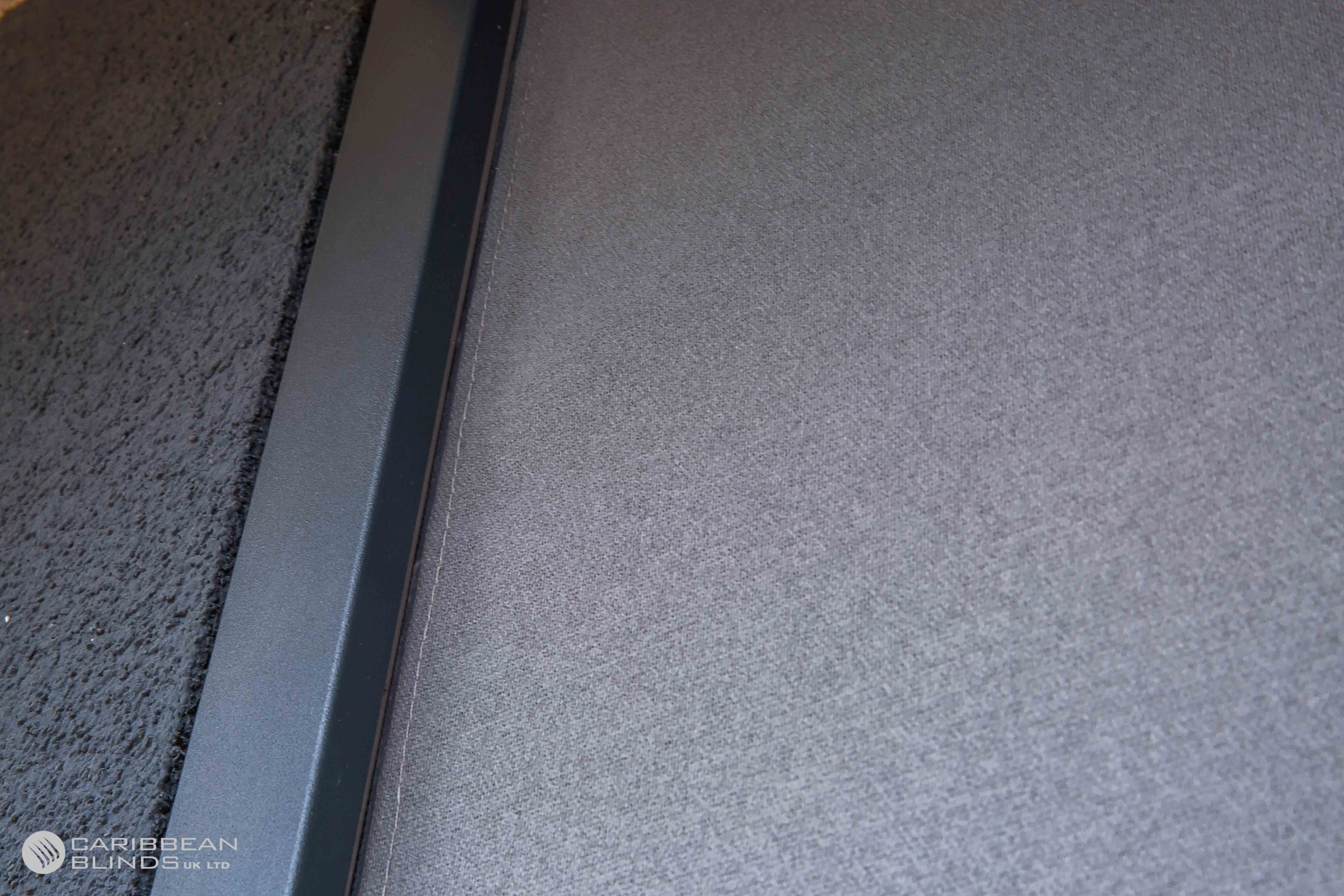 The Antiguan outdoor roller blind with its slim profiles and sleek design is a seamless addition to any vertical glazed area. Zip locking technology built into the side guides physically locks the fabric in place at every position rendering the blind windproof along with preventing any light shining between the edge, whilst the weighted leadrail ensures the fabric stays under optimum tension. A clever two-part side guide conceals all fixings and optional full-height spacers can set the blind off the façade to overcome protrusions such as vents and handles. A full cassette headbox discreetly hides your outdoor roller blind when not in use. Discover all the features and options below.