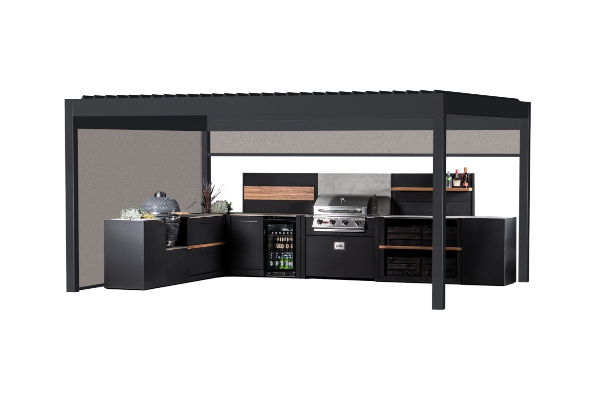 Our collection of three British made Grillo pergolas are not only highly stylish and incredibly functional, but extremely durable, utilising all the same high quality materials as our bespoke louvered pergolas, but in three set size combinations that offer exceptional value, to suit the most popular Grillo kitchen configurations and colour matched to seamlessly blend.