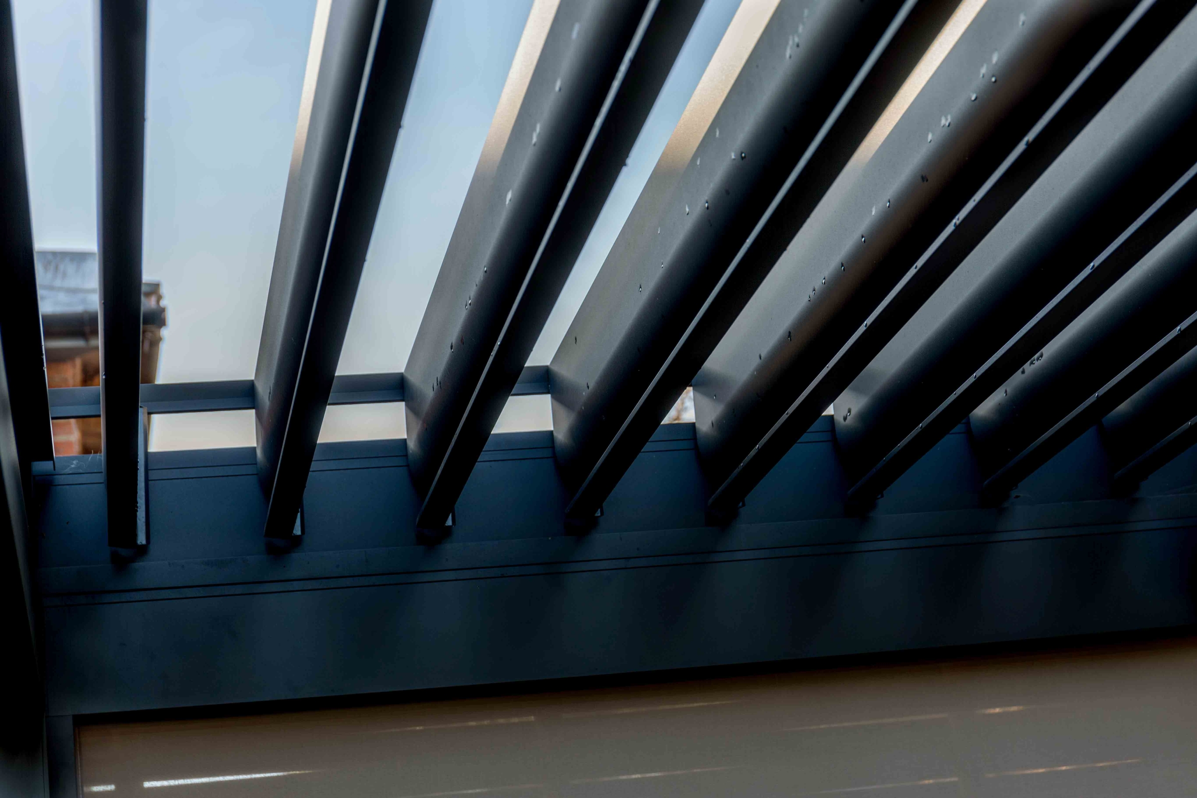 The guarantee covers the complete louvered roof system including framework (hardware), mechanism (rotating roof), electronics (motors, transmitters and sensors), optional sun screens, LED lighting and infra-red heaters.