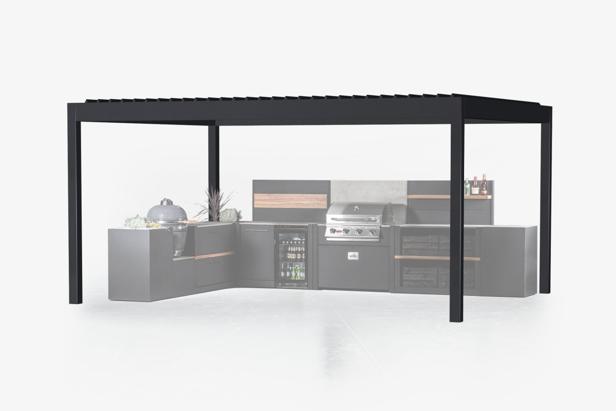 Our collection of three British made Grillo pergolas are not only highly stylish and incredibly functional, but extremely durable, utilising all the same high quality materials as our bespoke louvered pergolas, but in three set size combinations that offer exceptional value, to suit the most popular Grillo kitchen configurations and colour matched to seamlessly blend.