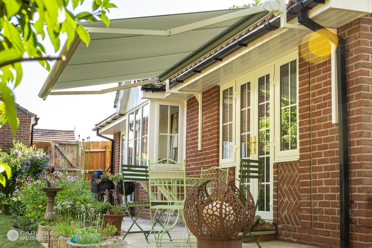 Practical and stylish, a Caribbean Blinds retractable patio awning outstretches creating a striking roof over your terrace to provide the ultimate alfresco living space. Blocking the sun’s heat, our patio awnings keep you, your family and friends cool on even the hottest of summer days. Water-repellent, our patio awnings also offer shelter from those unexpected and often persistent rain showers. Damaging UV rays are blocked whilst bright light is filtered to eliminate glare. Plus with optional LED under awning lighting and instant infra-red heating, you will create a pleasant atmosphere on your terrace to enjoy all year round.